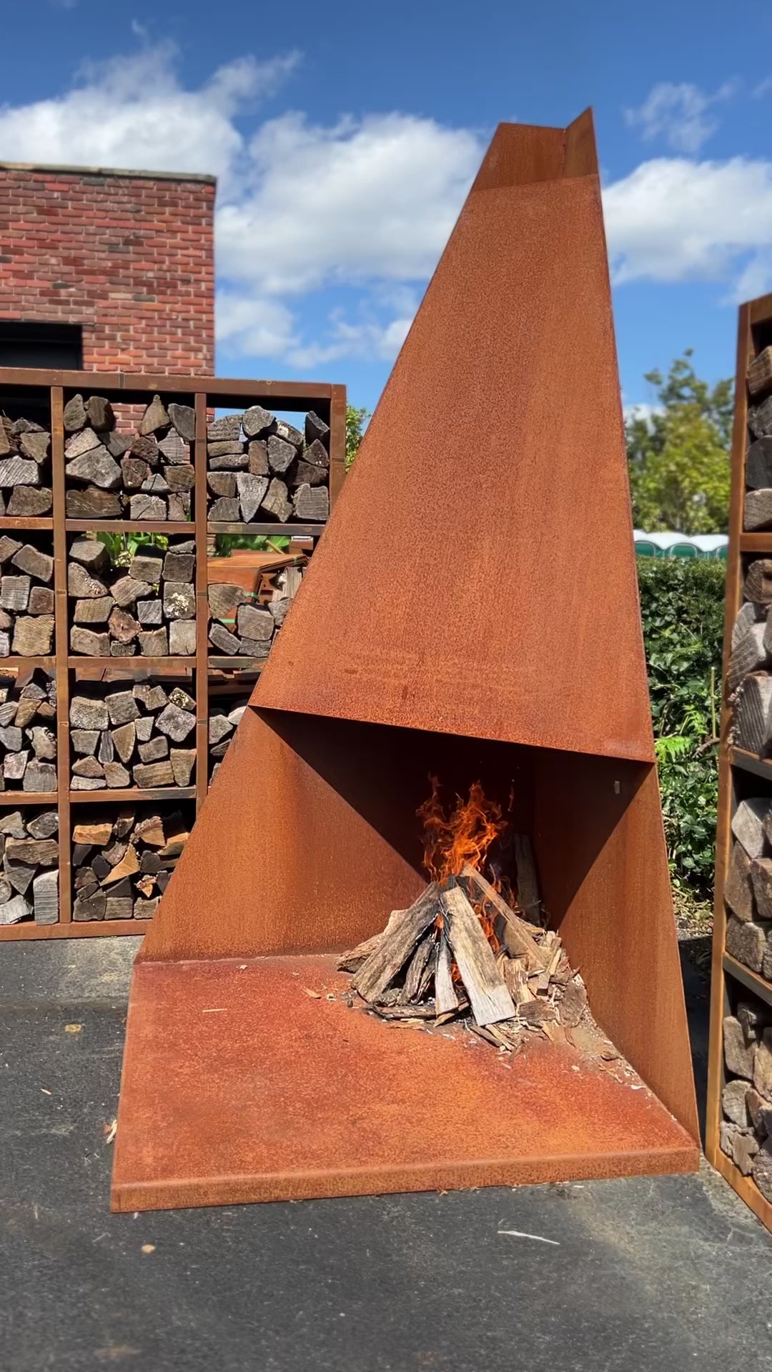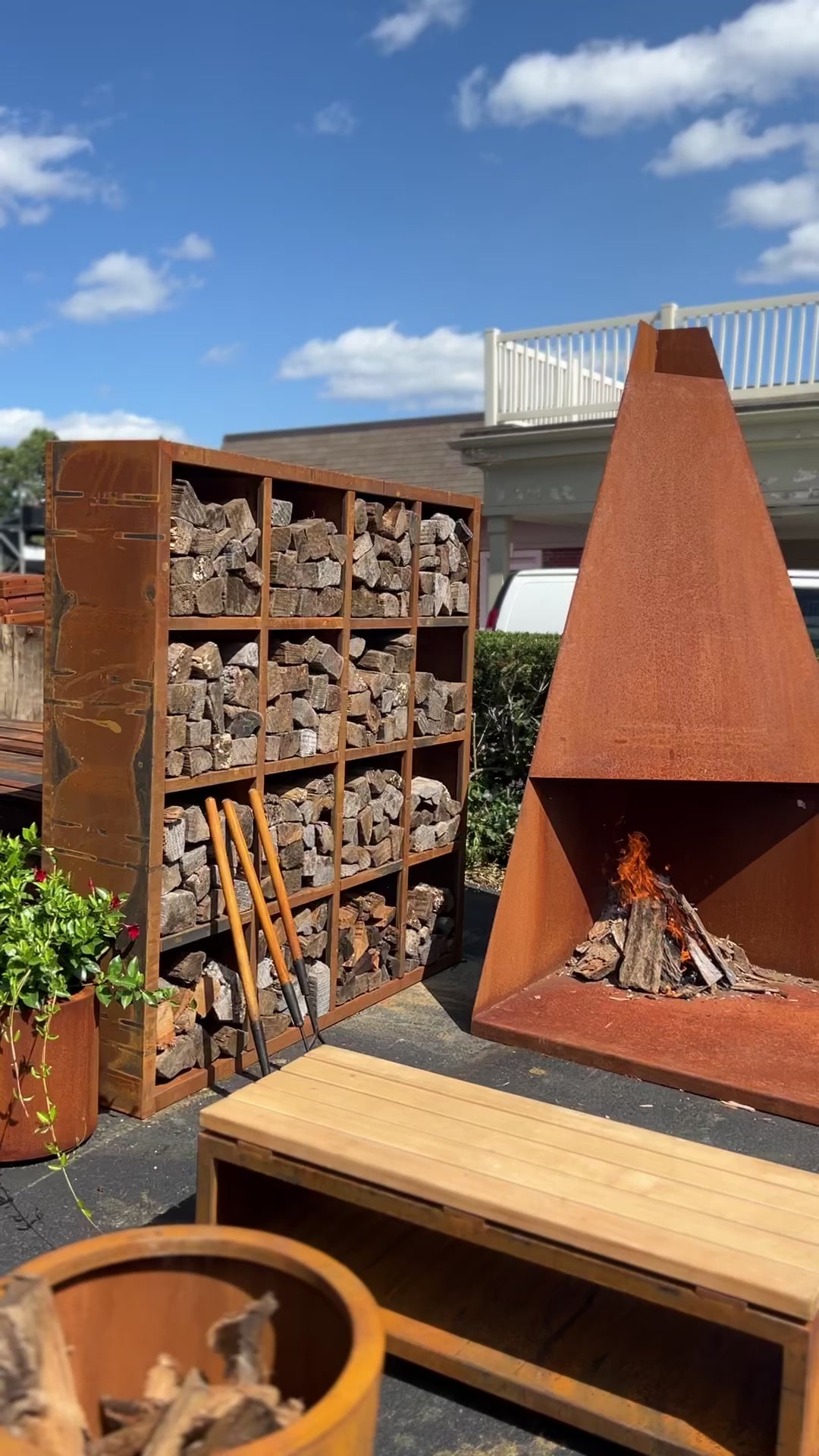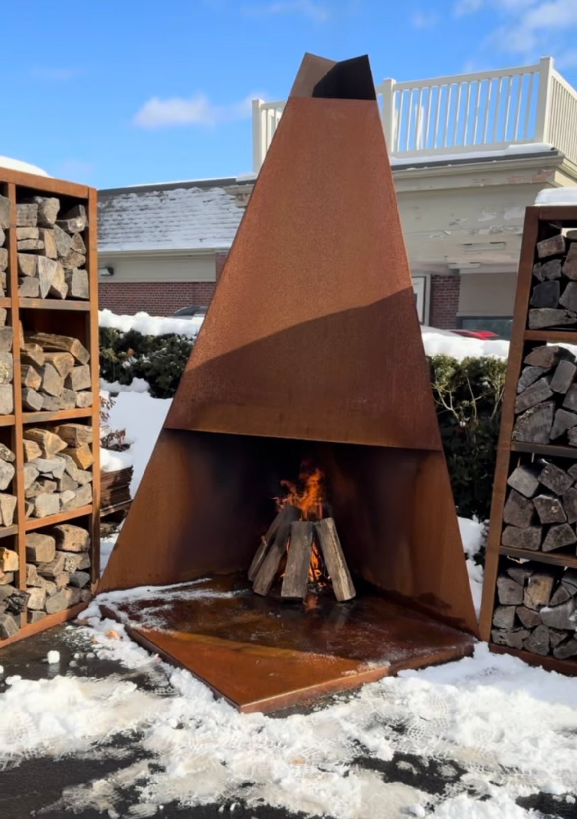 Constructed from Corten steel, renowned for its durability and weather-resistant properties, this outdoor fireplace is built to withstand the elements year-round. Whether it's a chilly evening in the fall or a brisk winter night, the fireplace provides warmth and ambiance, allowing you to enjoy your outdoor space in comfort and style.