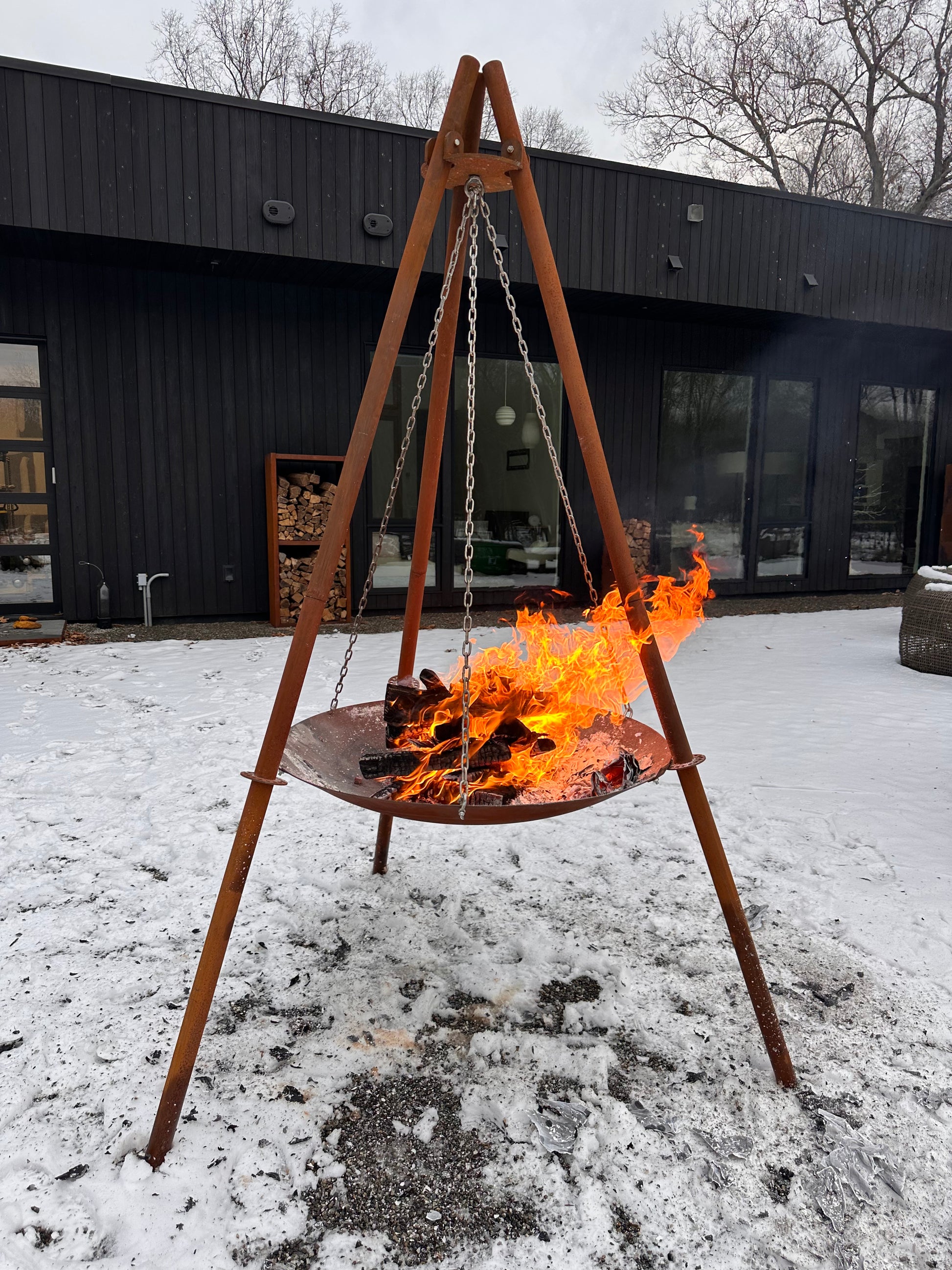 Constructed from high-quality Corten steel, this firepit develops a rich, weathered patina over time. The natural rust-like finish enhances its rugged appeal while providing exceptional resistance to the elements, ensuring long-term durability and minimal maintenance.