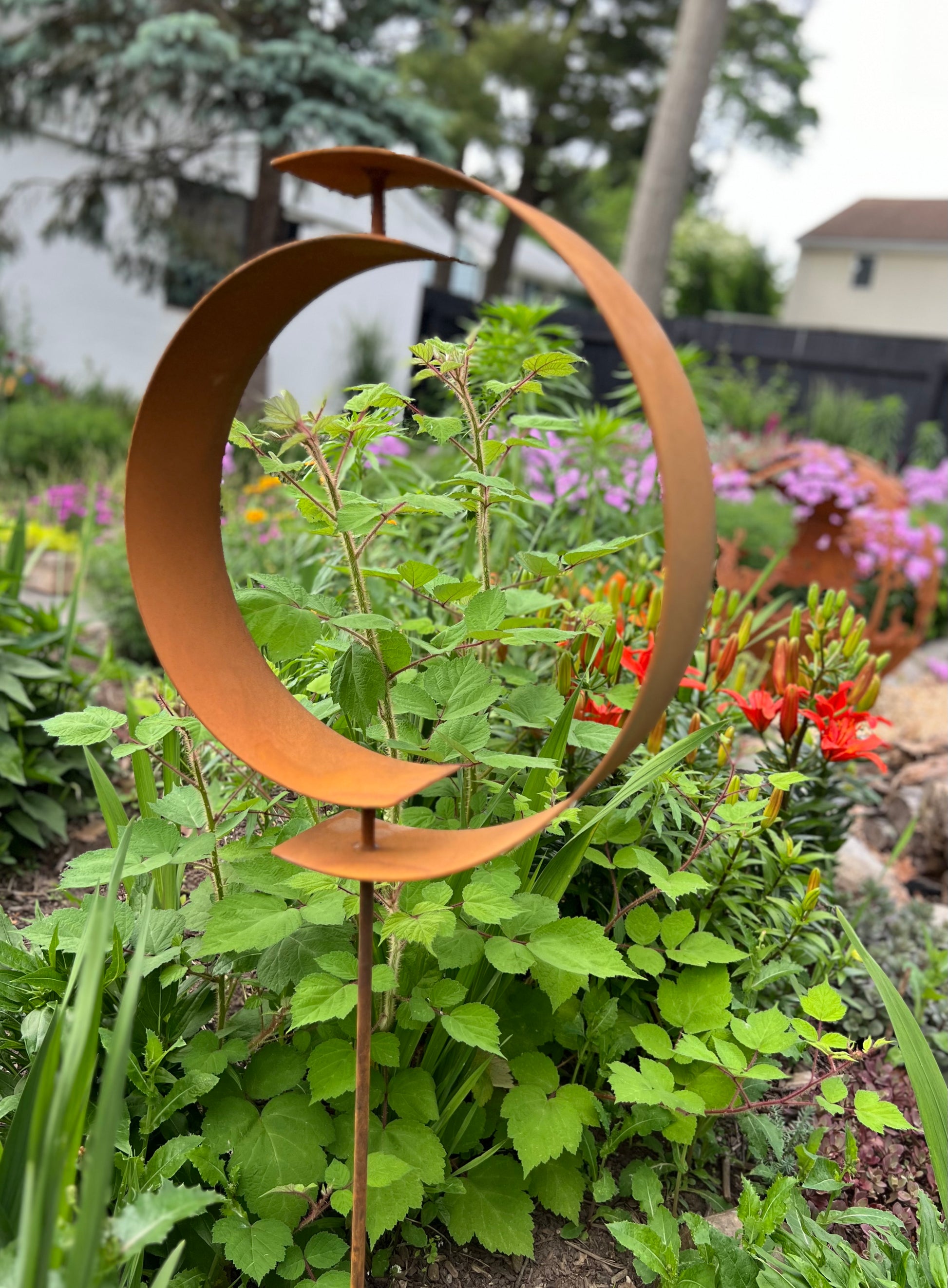 Transform your outdoor space with this striking half-moon garden sculpture crafted from durable corten steel. Its elegant, semi-circular design captures the essence of modern artistry while harmonizing with natural surroundings. Over time, the corten steel develops a rich, rust-like patina that enhances its character and complements garden landscapes.