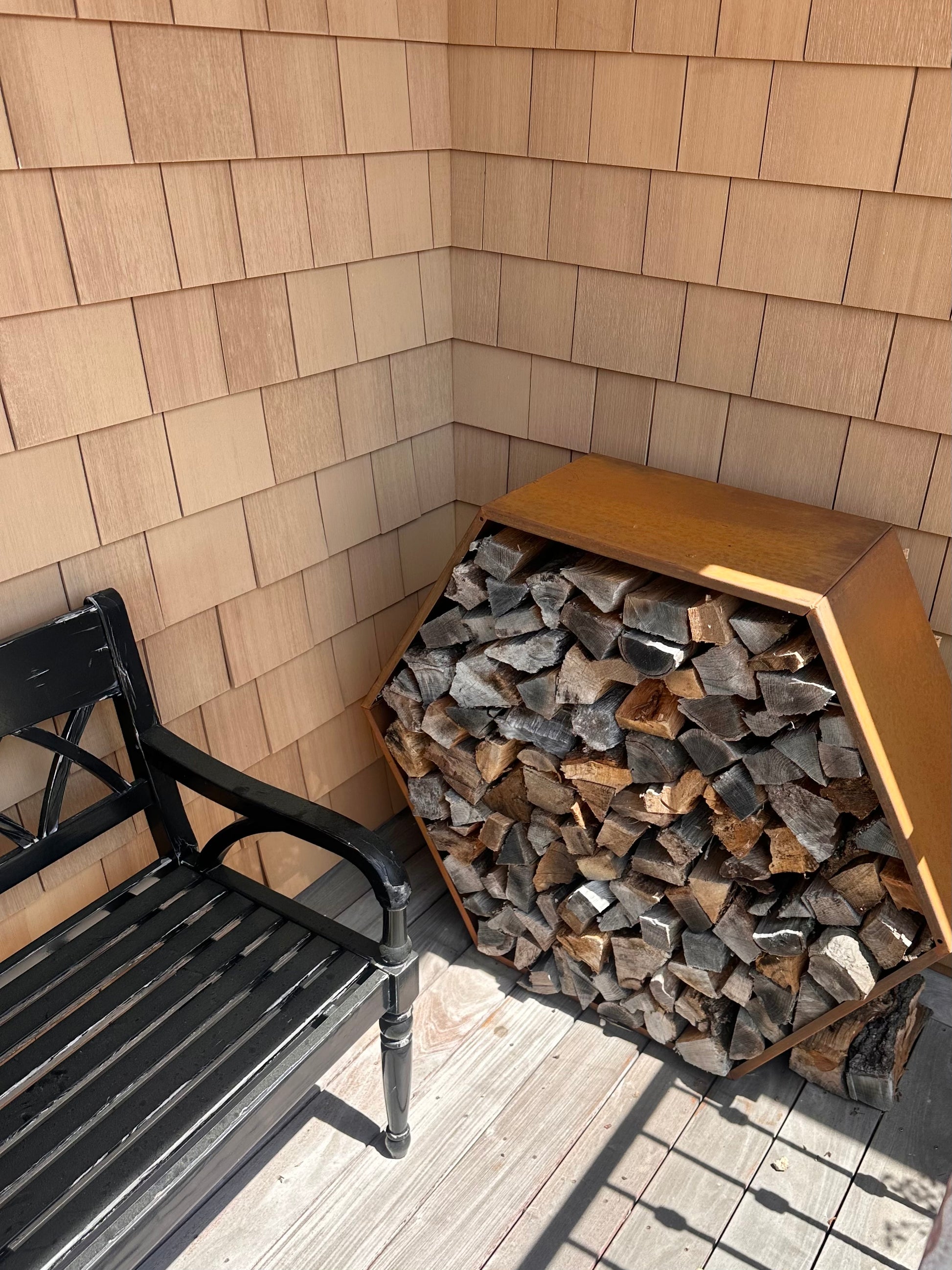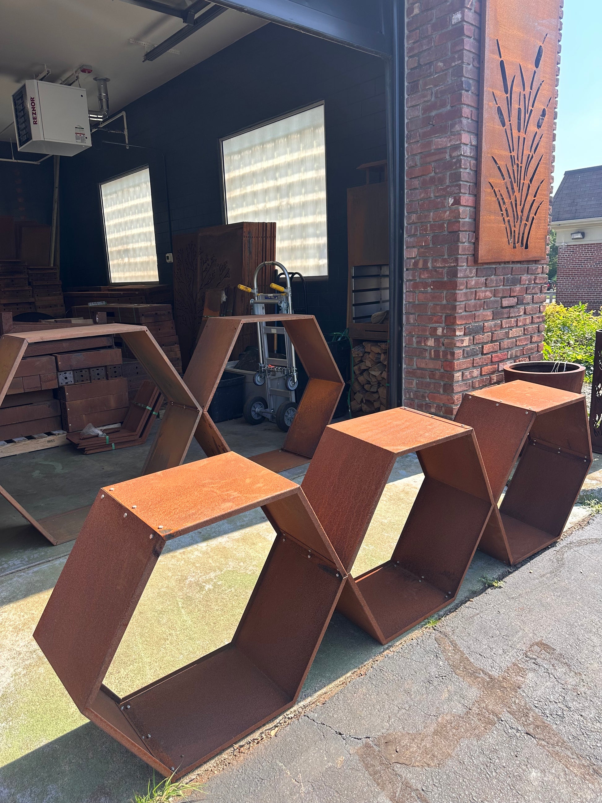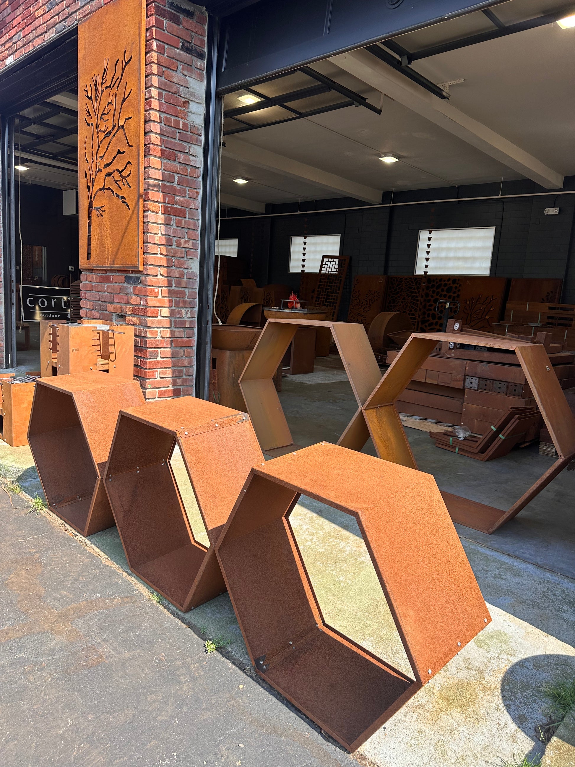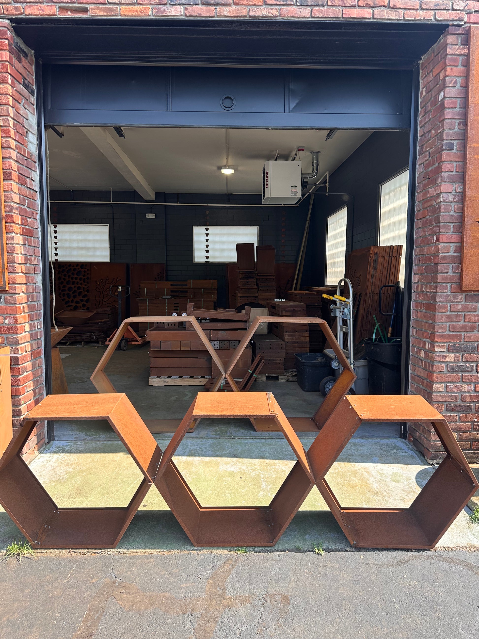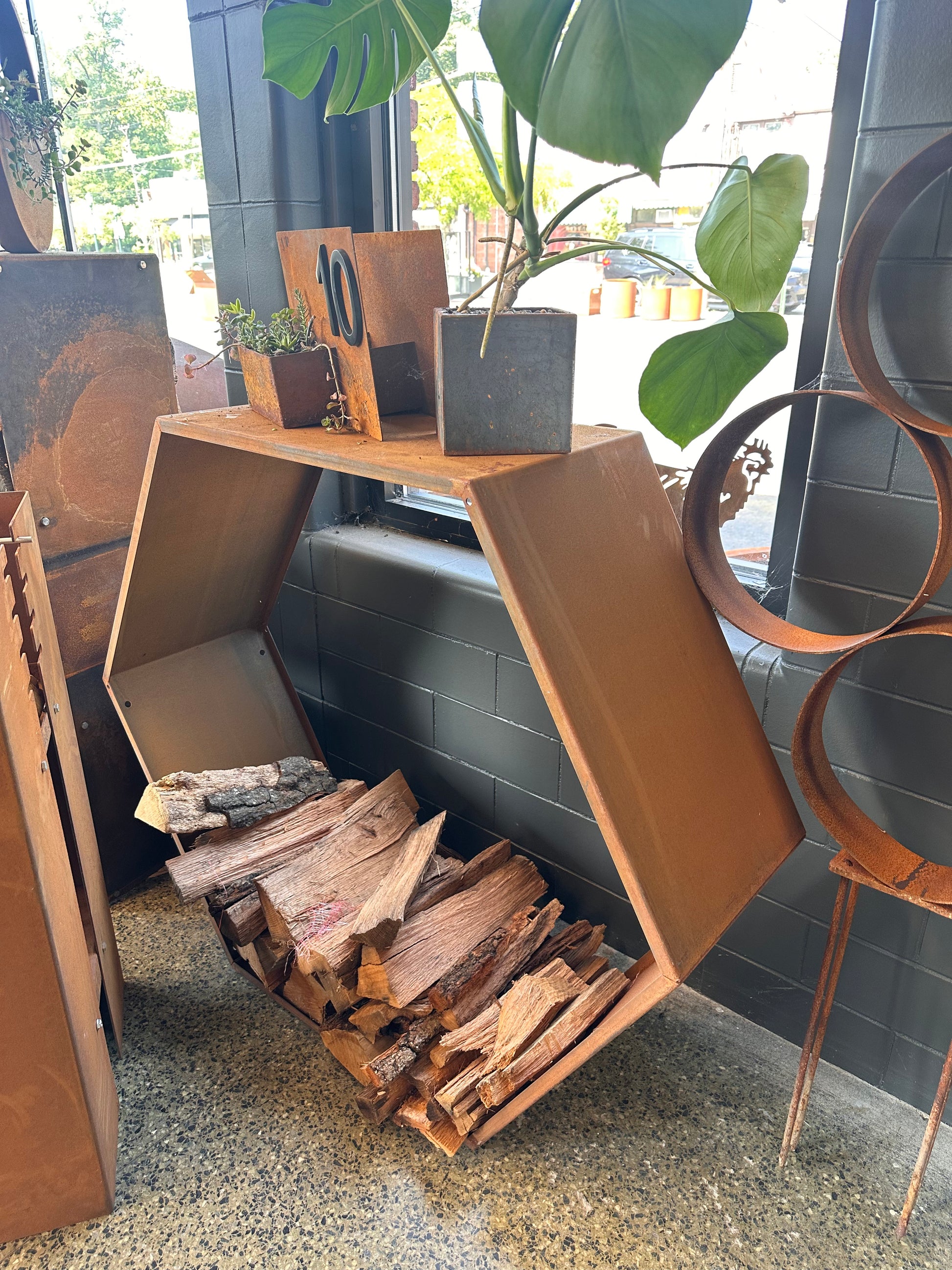 Introducing our innovative Hollow Hexagon Wood Storage, a fusion of functionality and aesthetics crafted from durable corten steel. This uniquely designed storage solution combines the robustness of corten steel with the organic warmth of wood, creating a striking piece that complements any indoor or outdoor space.