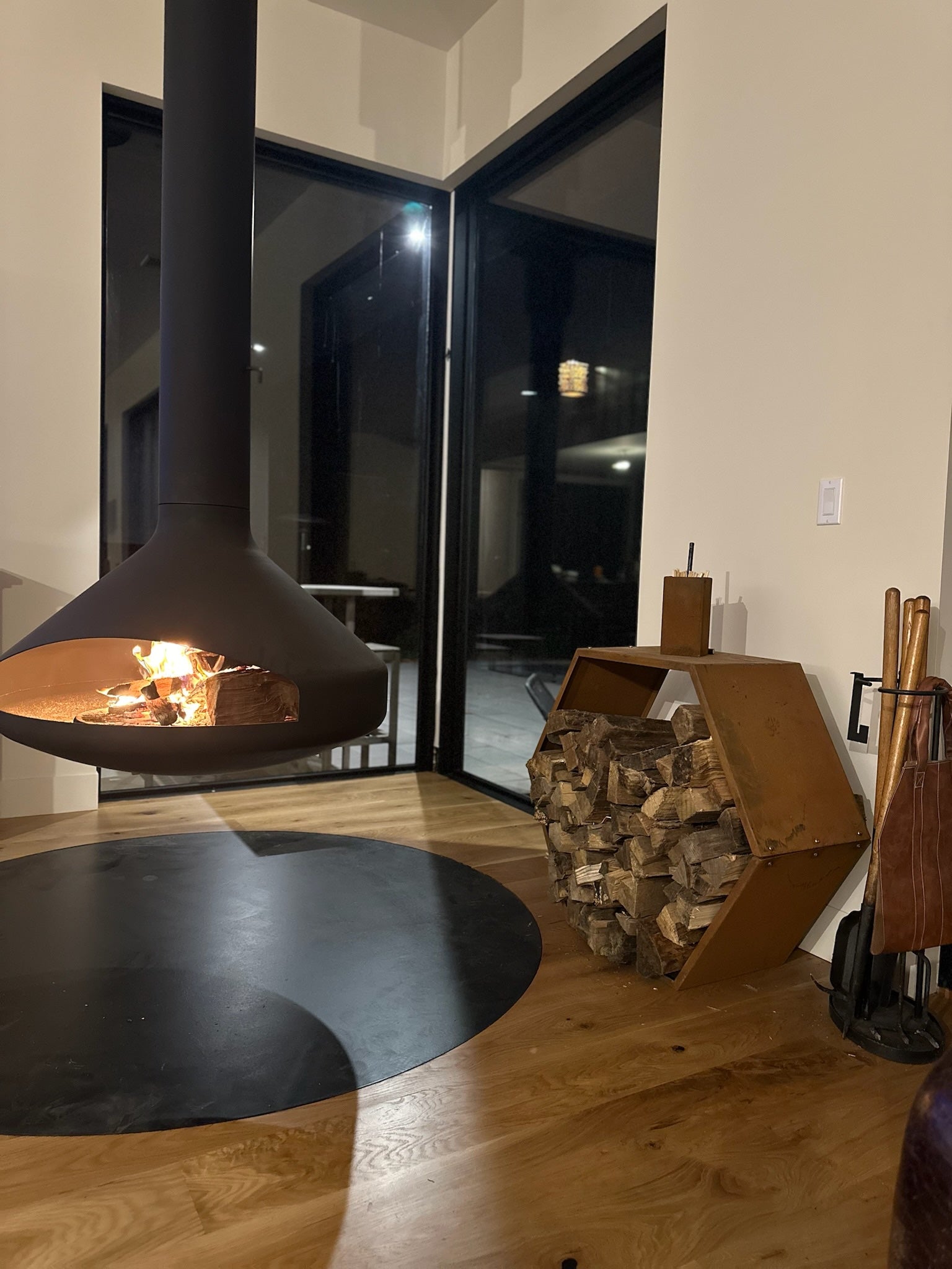 The hexagonal shape adds a contemporary touch while maximizing storage capacity. Its hollow structure allows for convenient stacking of firewood, logs, or other items, keeping them organized and easily accessible. Whether used beside a fireplace, on a patio, or in a living room, this storage unit adds a modern edge to any environment.