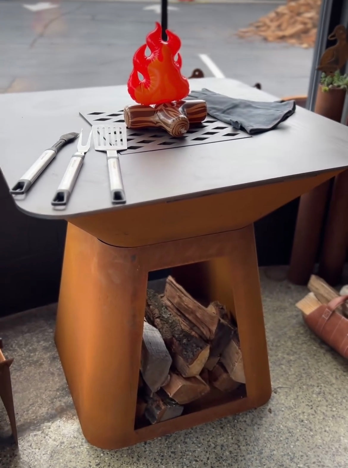 Elevate your outdoor grilling experience with our Square Top Grill featuring convenient wood storage underneath. Crafted from premium corten steel, this grill combines durability and sleek design, making it a stunning addition to any patio or backyard.