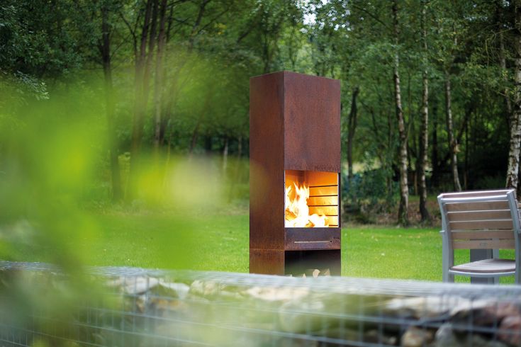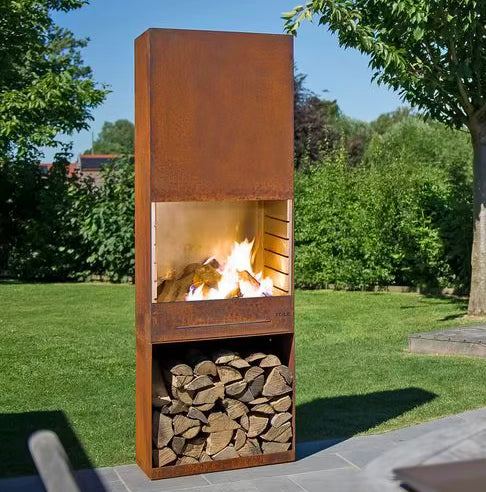 Tall Corten Grilling Station with Firewood Storage & BBQ Grilling Section