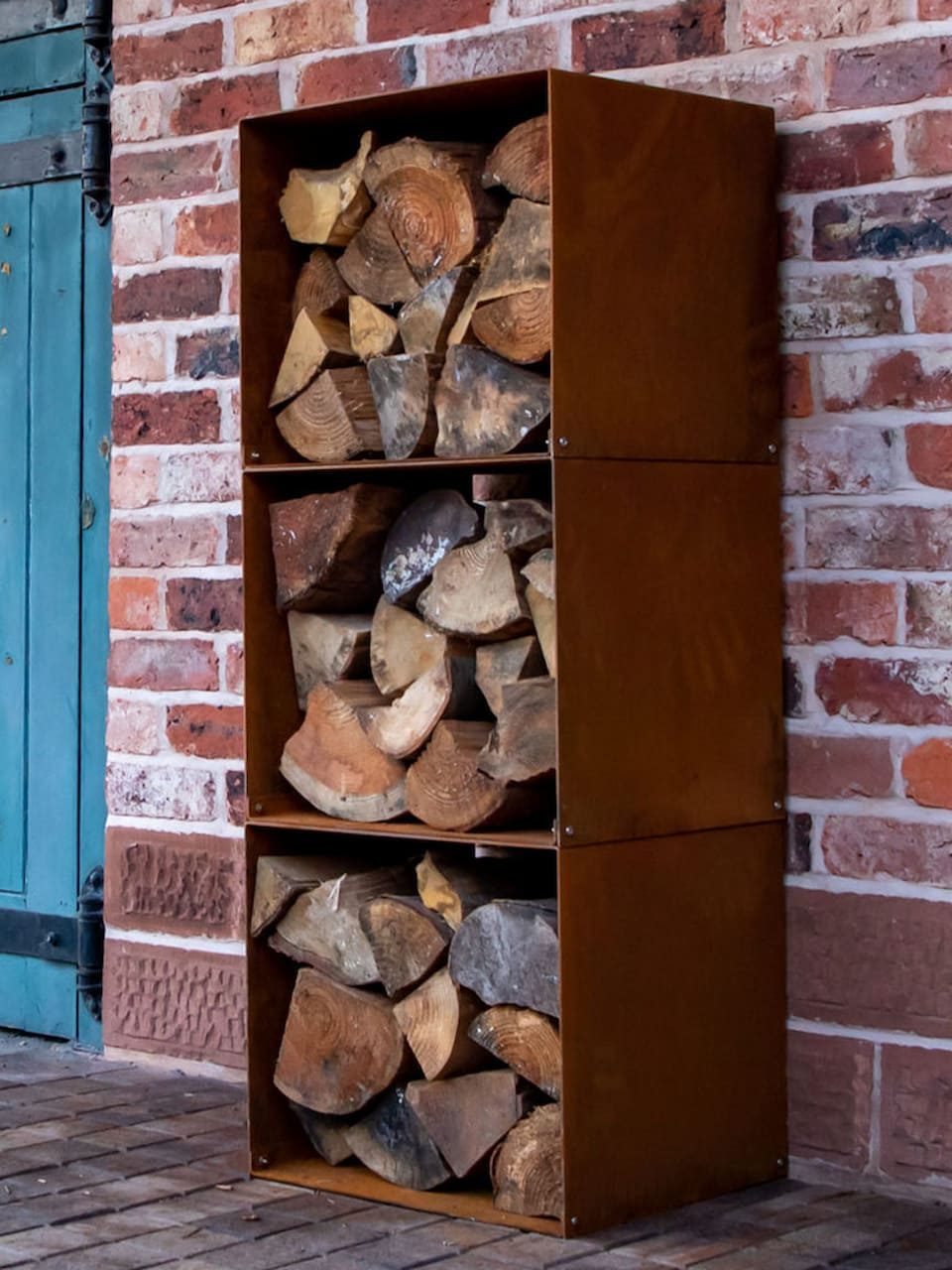 Constructed from corten steel, renowned for its durability and weather-resistant properties, our Tall Cube Wood Storage ensures longevity and resilience in various environments. The tall cube design maximizes vertical space, making it an efficient storage solution for compact areas while adding a touch of modern elegance.